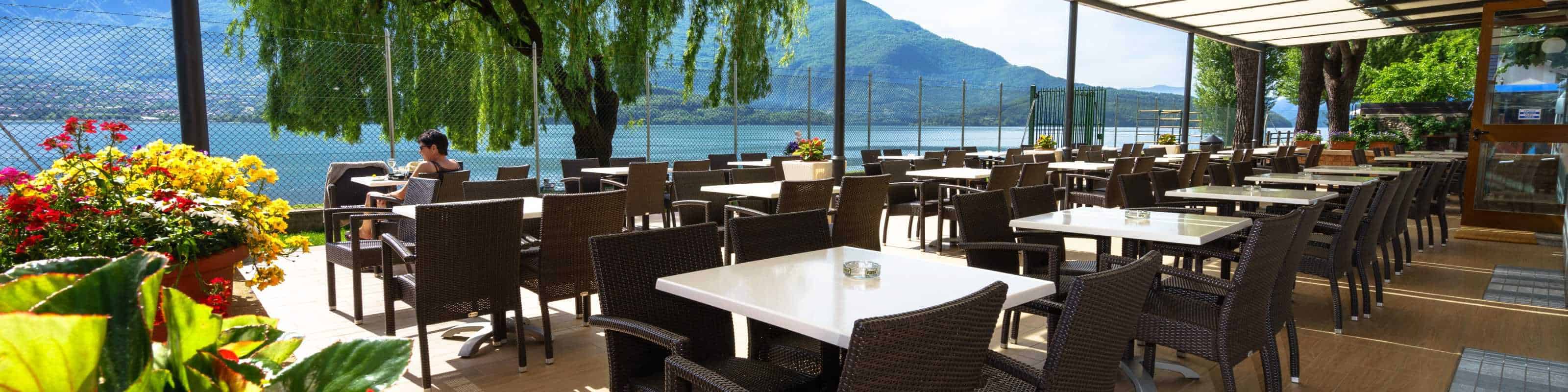 De camping is voorzien van een bar direct aan het meer met een zeer groot terras. Vanaf het terras heb je een mooi uitzicht op het Comomeer. In de bar is tevens een kleine campingwinkel waar je de kleine noodzakelijke boodschappen kunt kopen. Ook kun je hier terecht voor vers brood, vleeswaren en kaas. Ook is er een ruime tv-zaal aanwezig. Belangrijke sportwedstrijden worden hier uitgezonden, zoals het EK, WK of Formule 1.