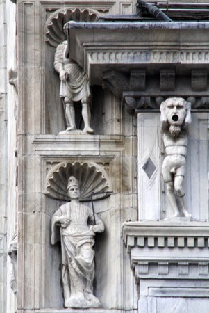In 1933 is de gevel nog eens grondig gerestaureerd, toen de ‘overhang’ op het plein dreigde neer te storten. Later dreigden de twee beelden van Plinio il Vecchio en Plinio il Giovane bij de deur kapot te gaan en zijn deze twee beelden voorzien van glas om ze zo te beschermen tegen de smog en andere onzuiverheden. Ook zijn enkele stukken marmer vervangen. Overigens is het een fabel dat kathedralen ooit spierwit waren.